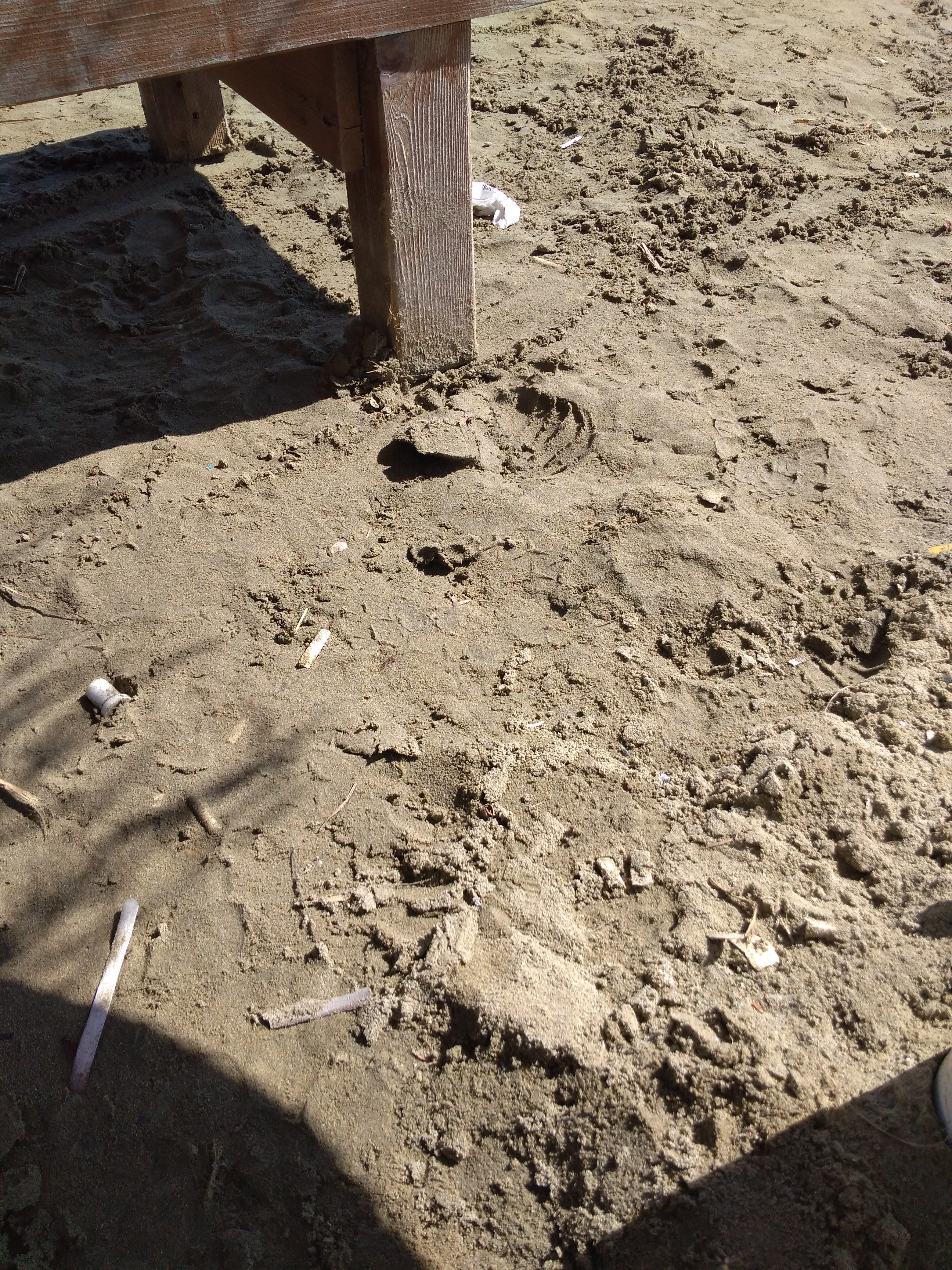 Невзрачный пляж, даже рука не поднялась его сфотографировать. Рядом указатель на укромный пляжик в скале: