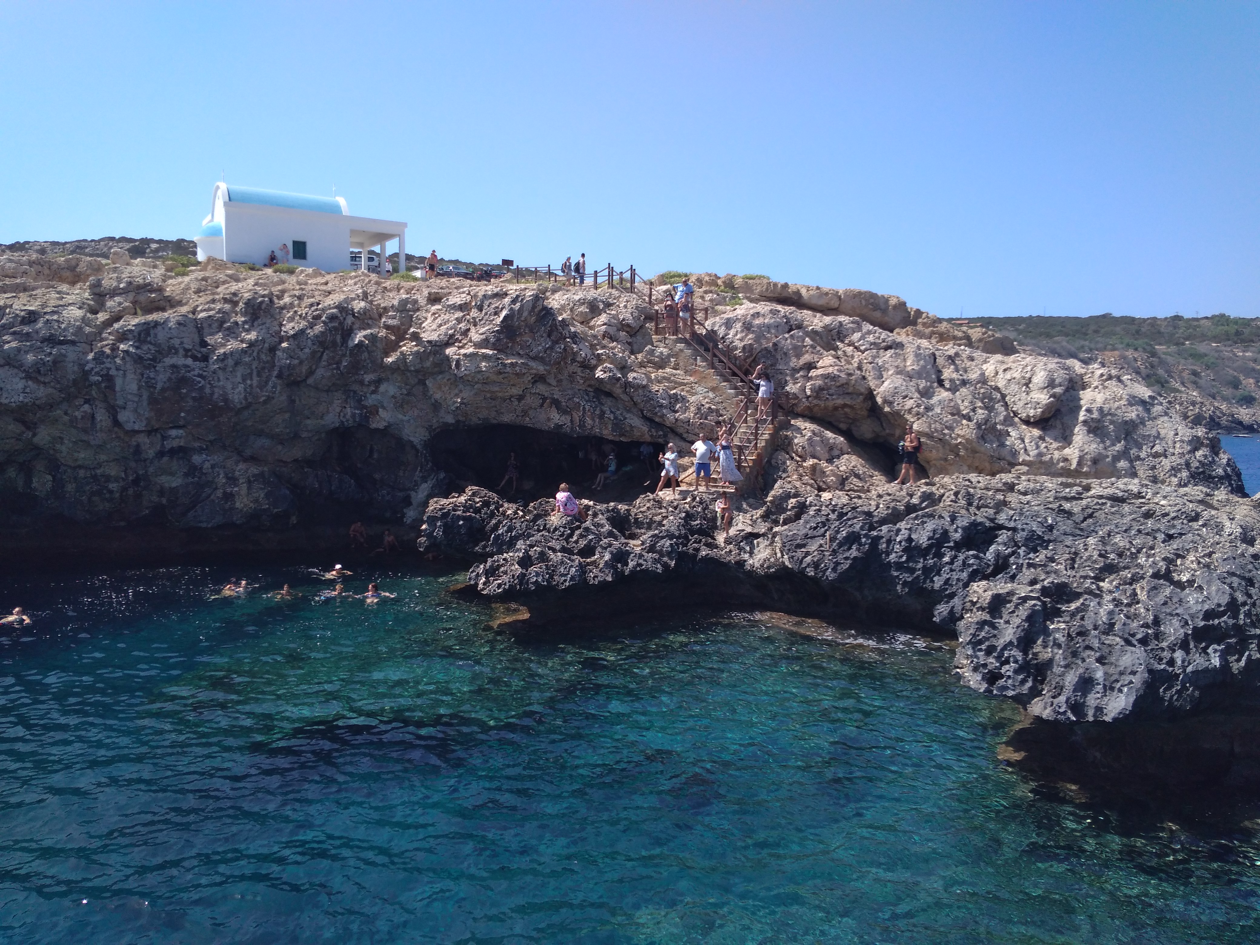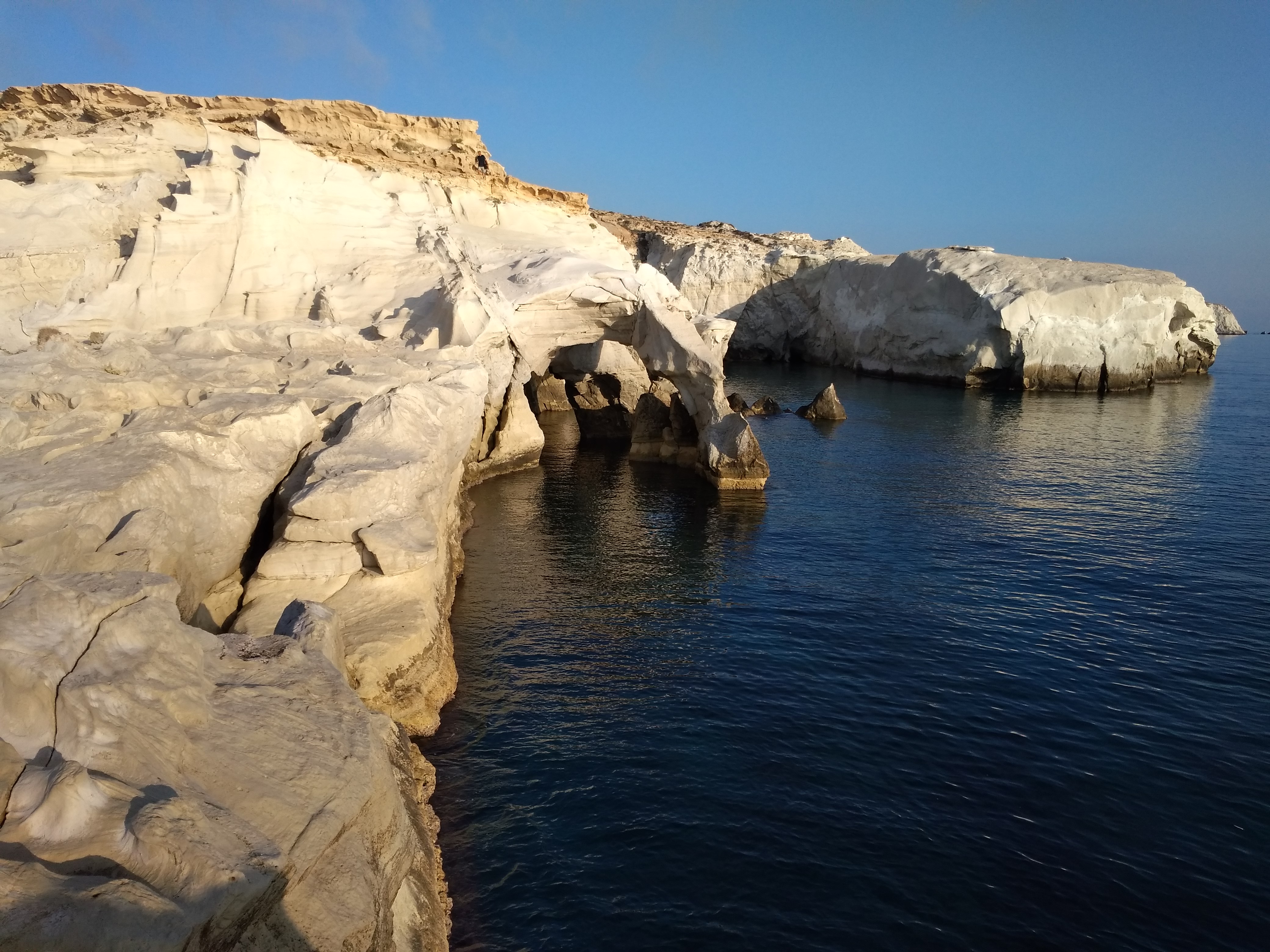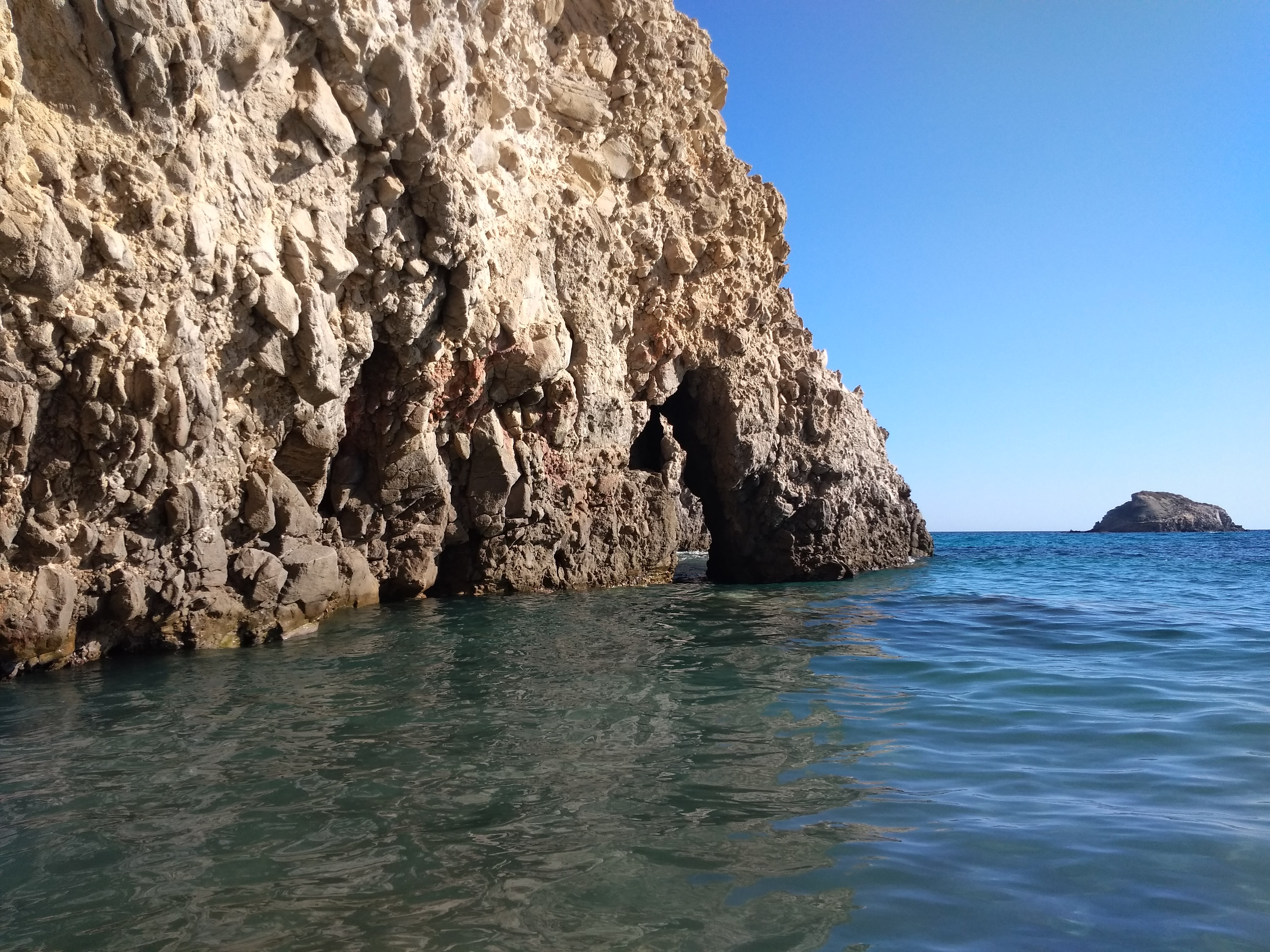К скалистым берегам мыса Клефтико доступ есть только с воды, автомобильных дорог к нему нет. Так что мы взяли морскую экскурсию от «Delfinia boat” в одном из многочисленных экскурсионных бюро Адамаса (стоимостью 25€ для взрослых и 10€ для детей) и отправились на прогулку с пляжа Кипос. Место нереально красивое. За 3 часа прогулки у нас было 2 остановки с купанием, перекус в виде арбуза и сендвичей, а также на удивление ненавязчивое и приятное сопровождение.