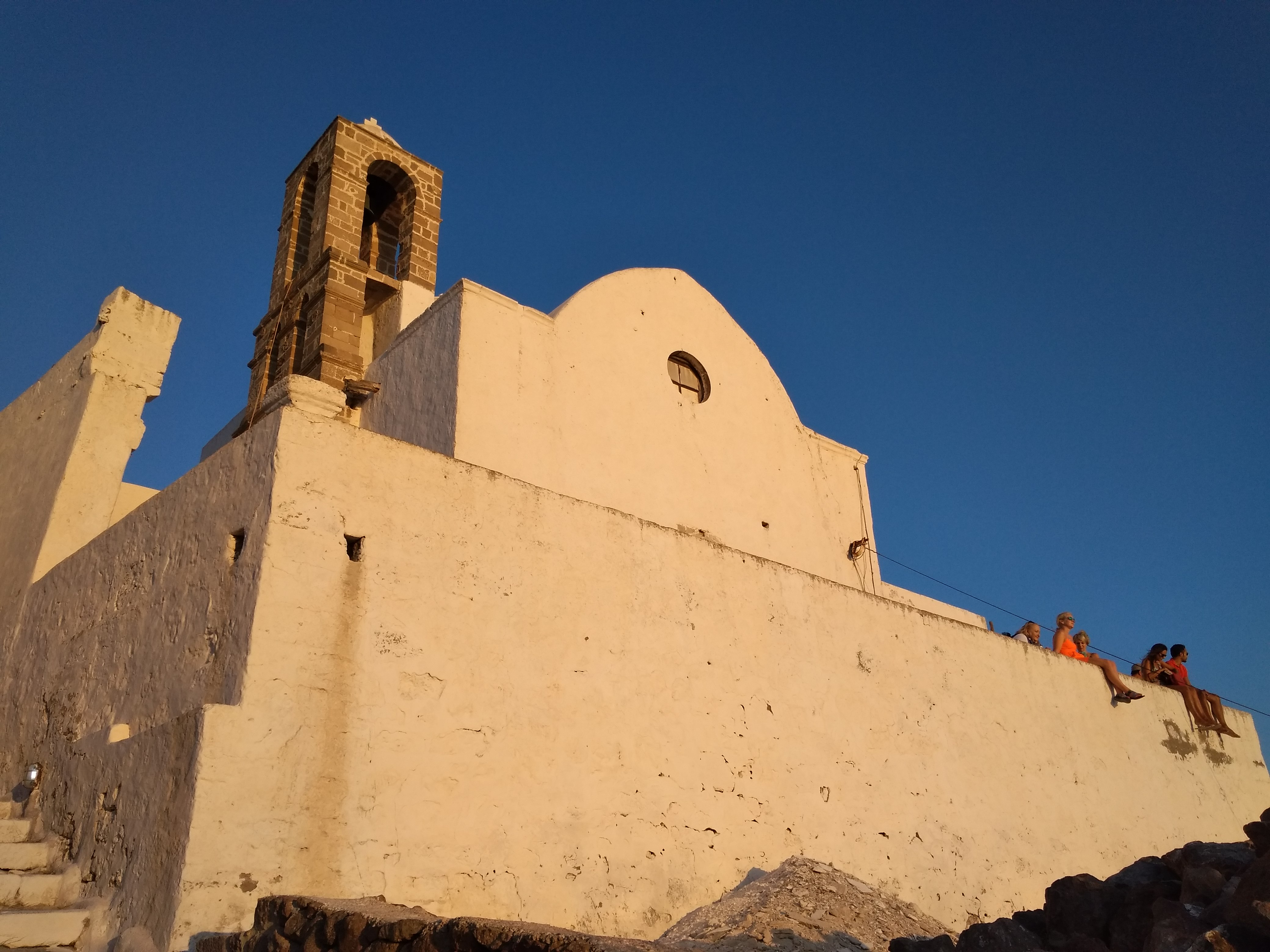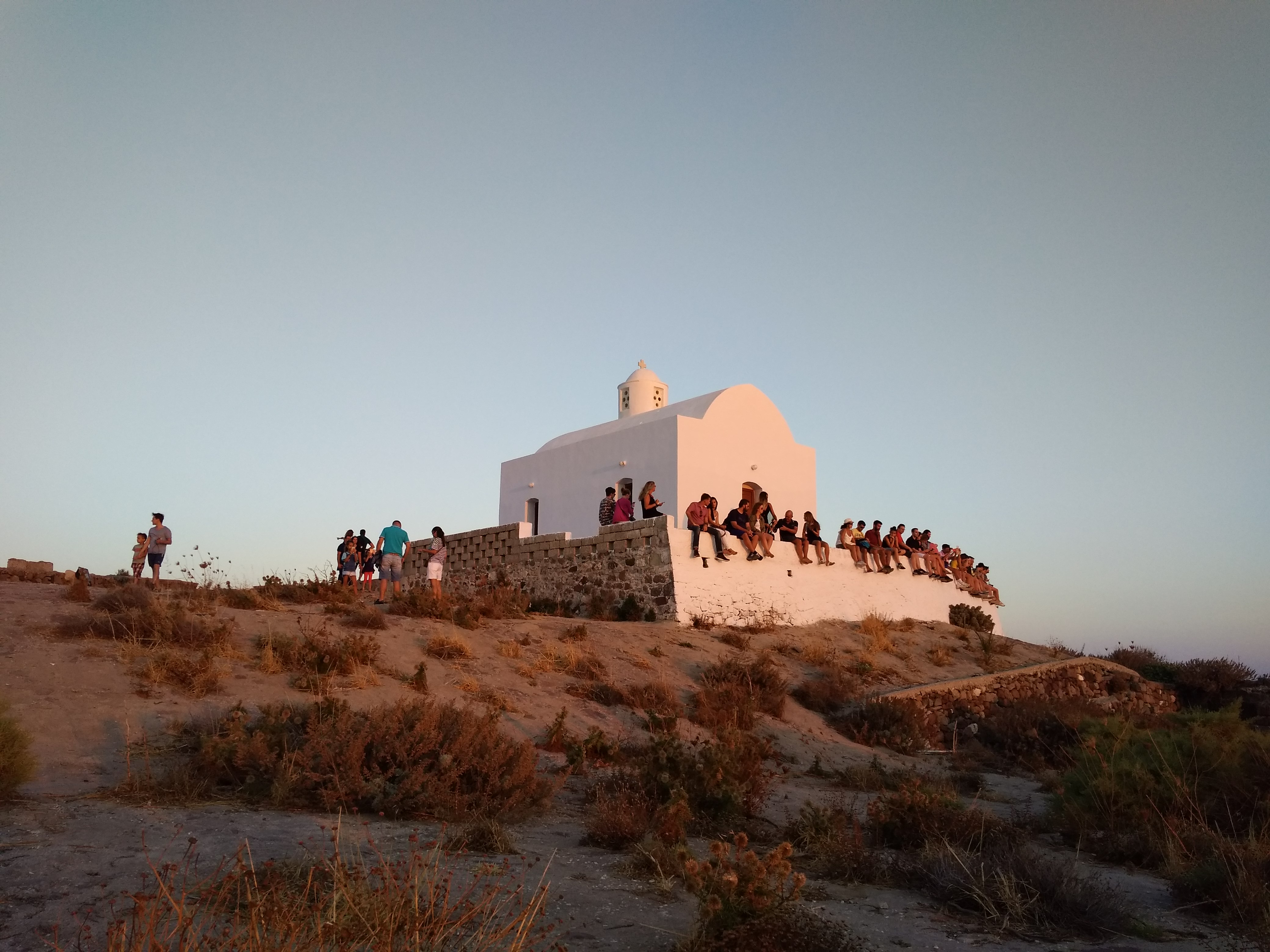 Очень красивый греческий поселок на горе, откуда открываются потрясающие виды на закаты. Вечером народ потоком стекается на вершину горы с церковью, занимая удобные места для встречи заката: