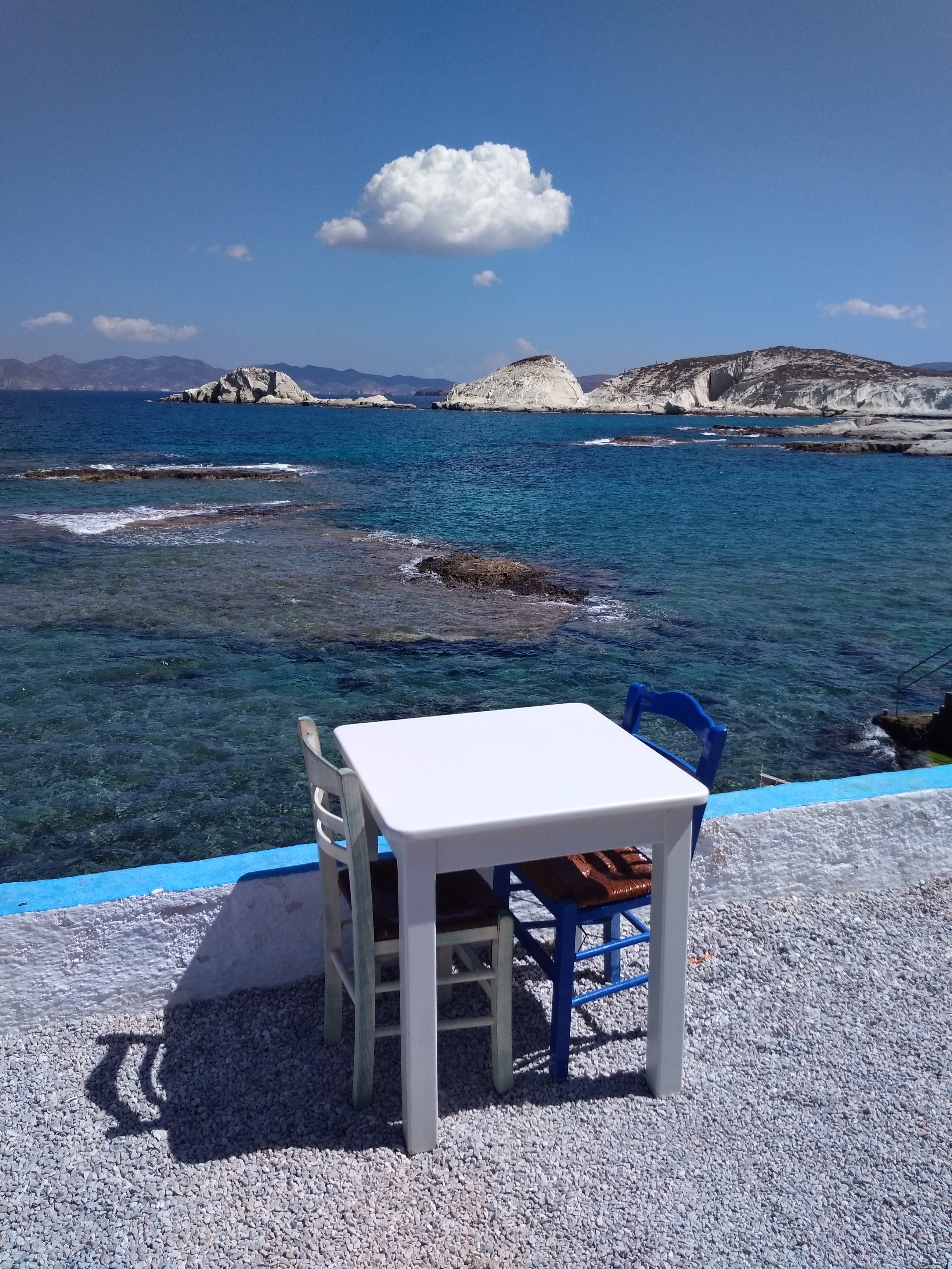 У меня была давняя мечта, которая уже много лет не давала мне покоя — посетить неимоверно прекрасный остров Санторини. После того, как я увидела очень доступные по цене билеты на сайте греческого авиаперевозчика Aegean, решила что ей таки суждено сбыться! Но учитывая, что Санторини остров очень популярный среди туристов и потому очень людный, мы решили всё же основную часть отпуска провести на более спокойном острове. Прошерстив просторы интернета в поисках красивого и малолюдного острова вблизи Санторини, наш выбор пал на Милос! Этот живописный остров нам подошел идеально, так как соответствовал всем нашем запросам — мало отдыхающих, красивые пляжи, находится между Афинами и Санторини, и с него удобно добираться на Санторини на прямом пароме.