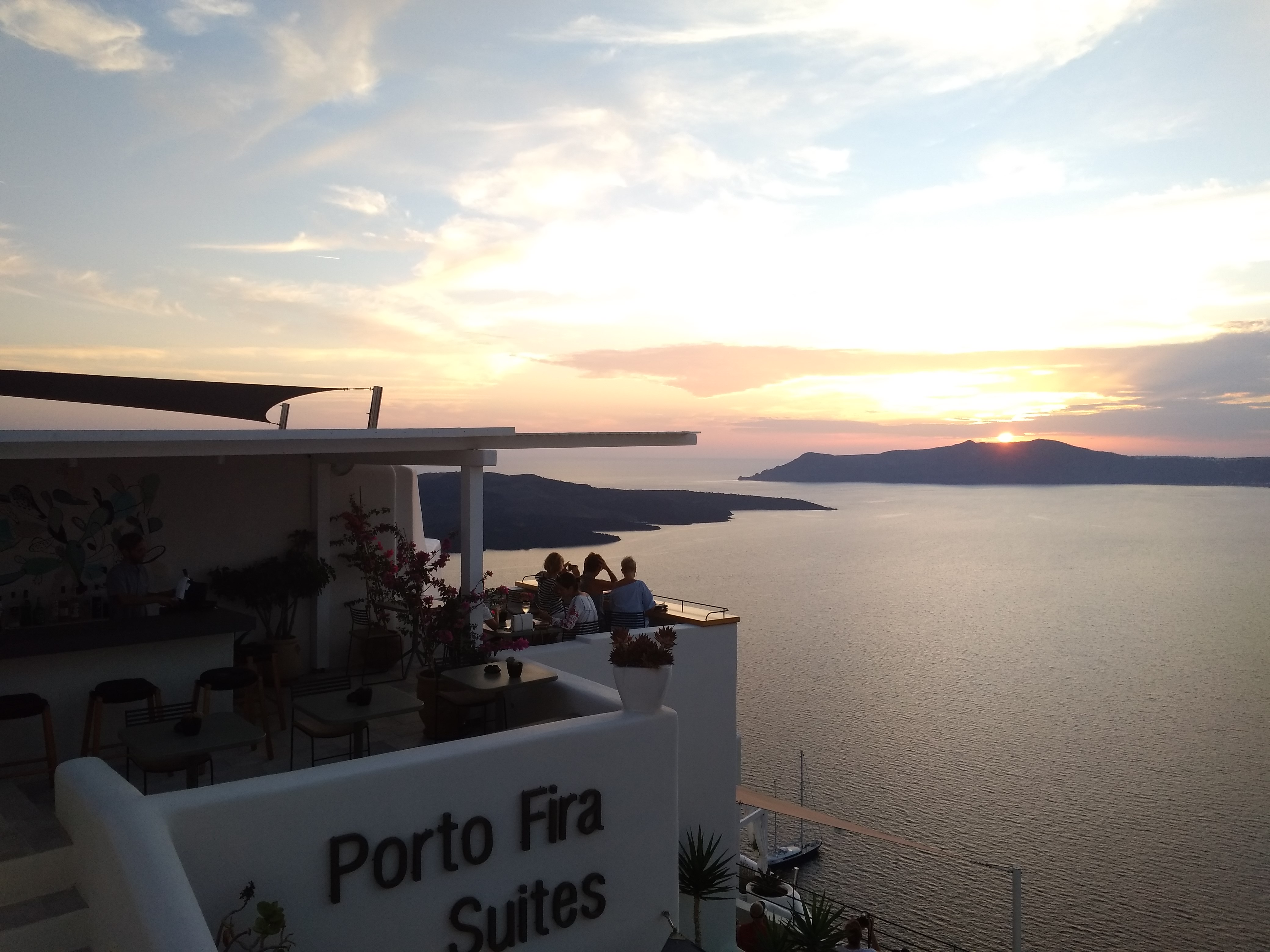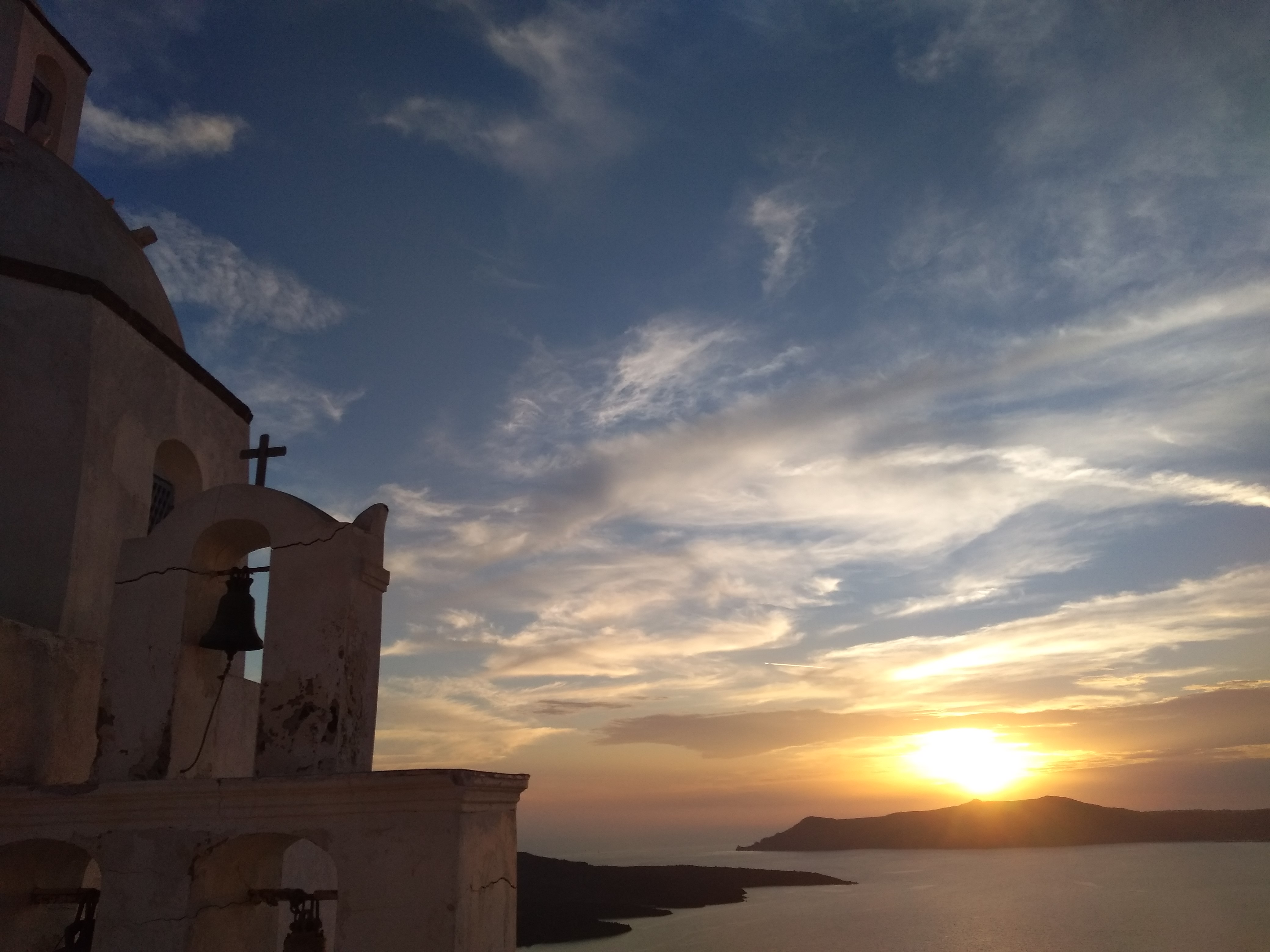 Закаты в Фире по праву считаются одними из самых красивых в мире! Солнце садится прямо по центру залива, освещая закатными лучами белые домики Фиры, каскадом спускающиеся к морю на фоне черных вулканических скал. Неимоверно завораживающее зрелище!