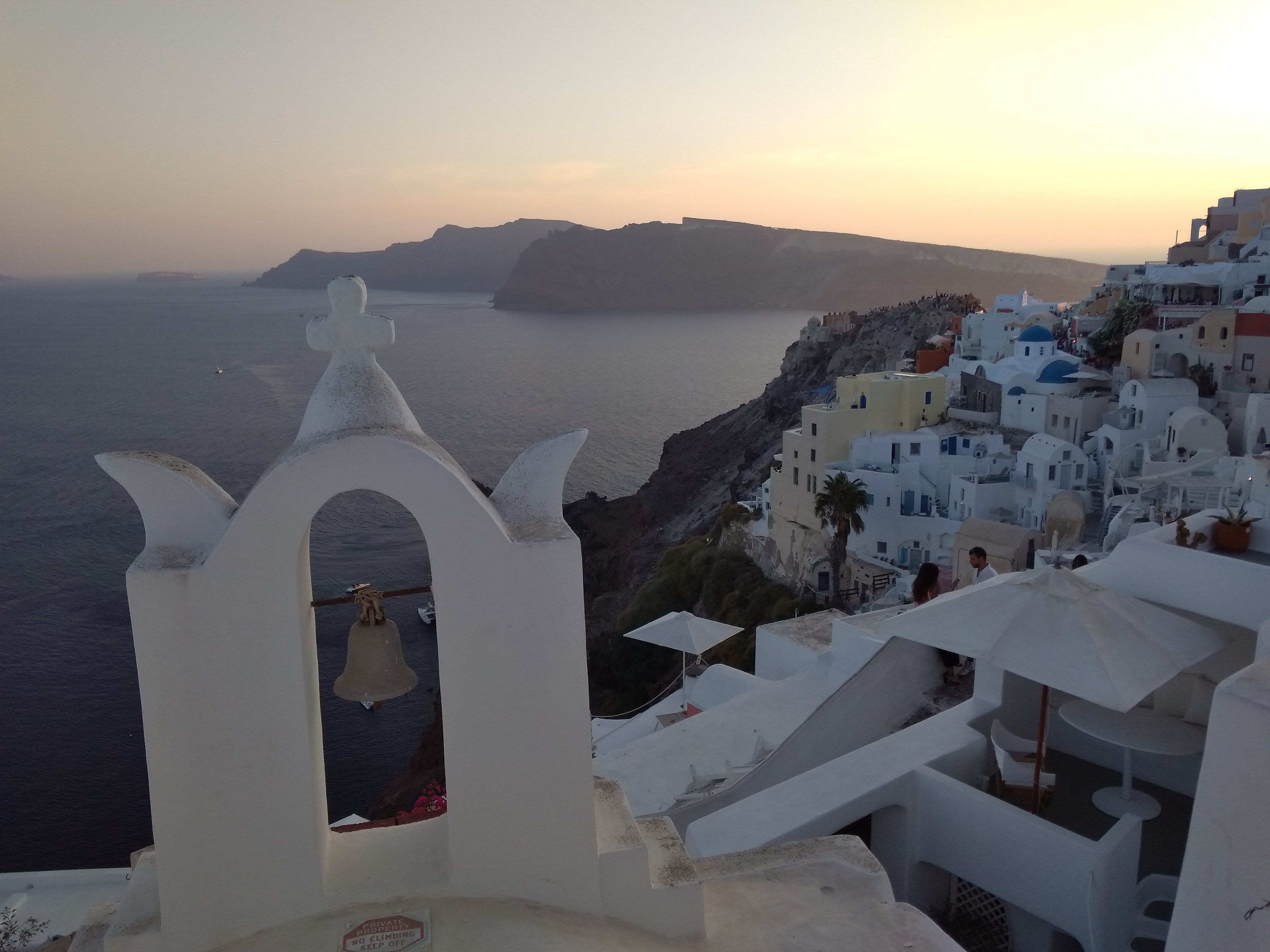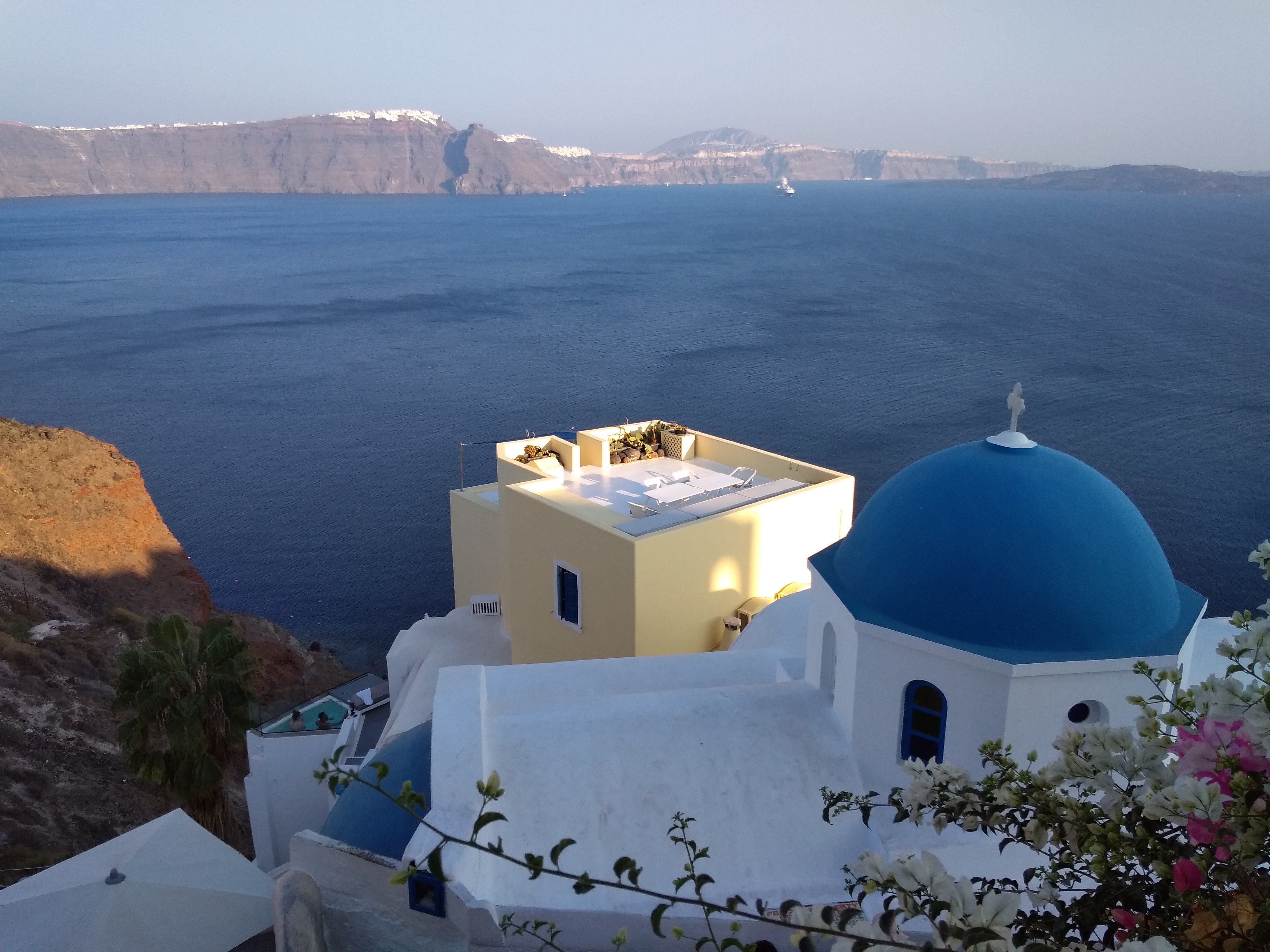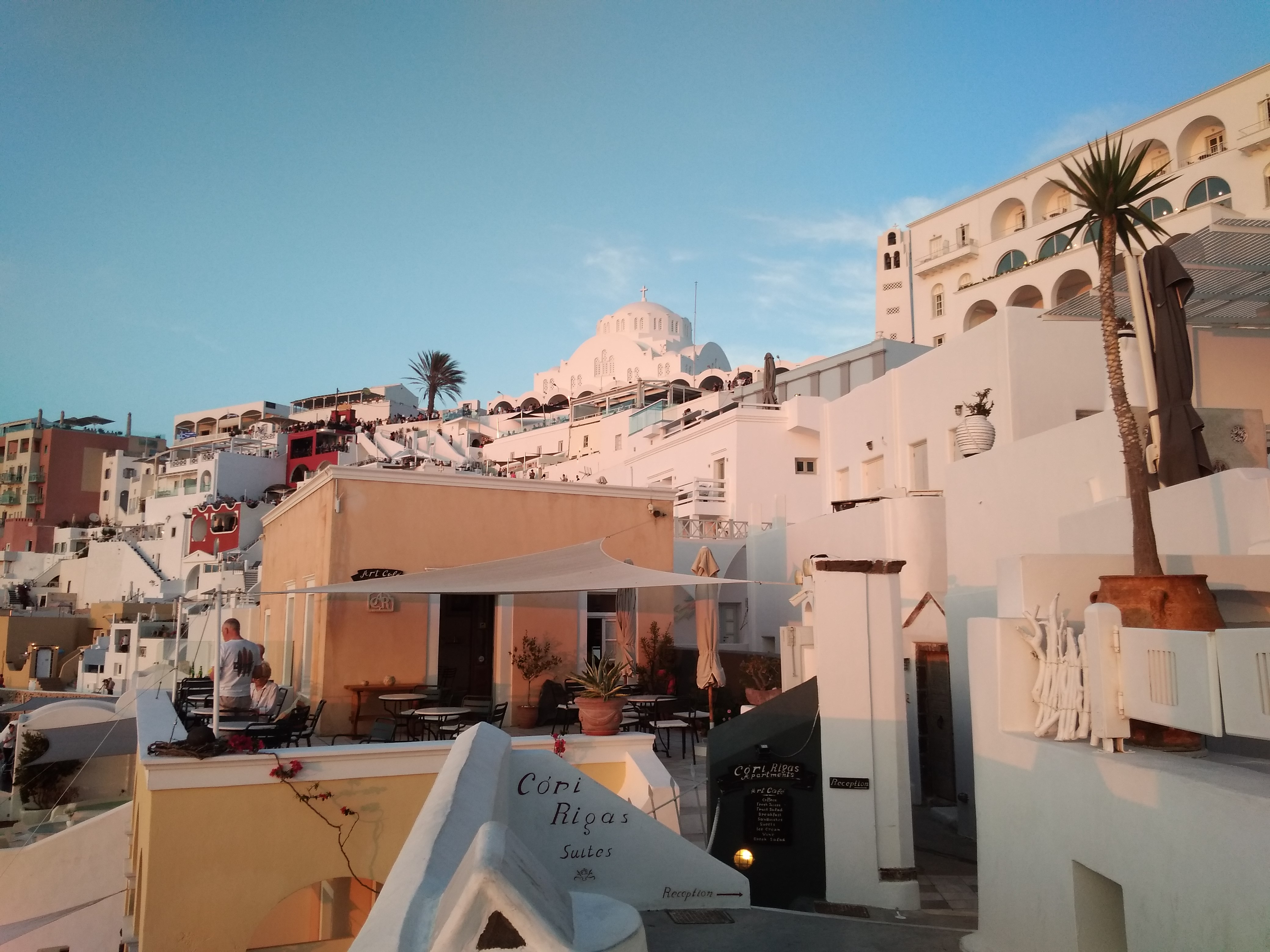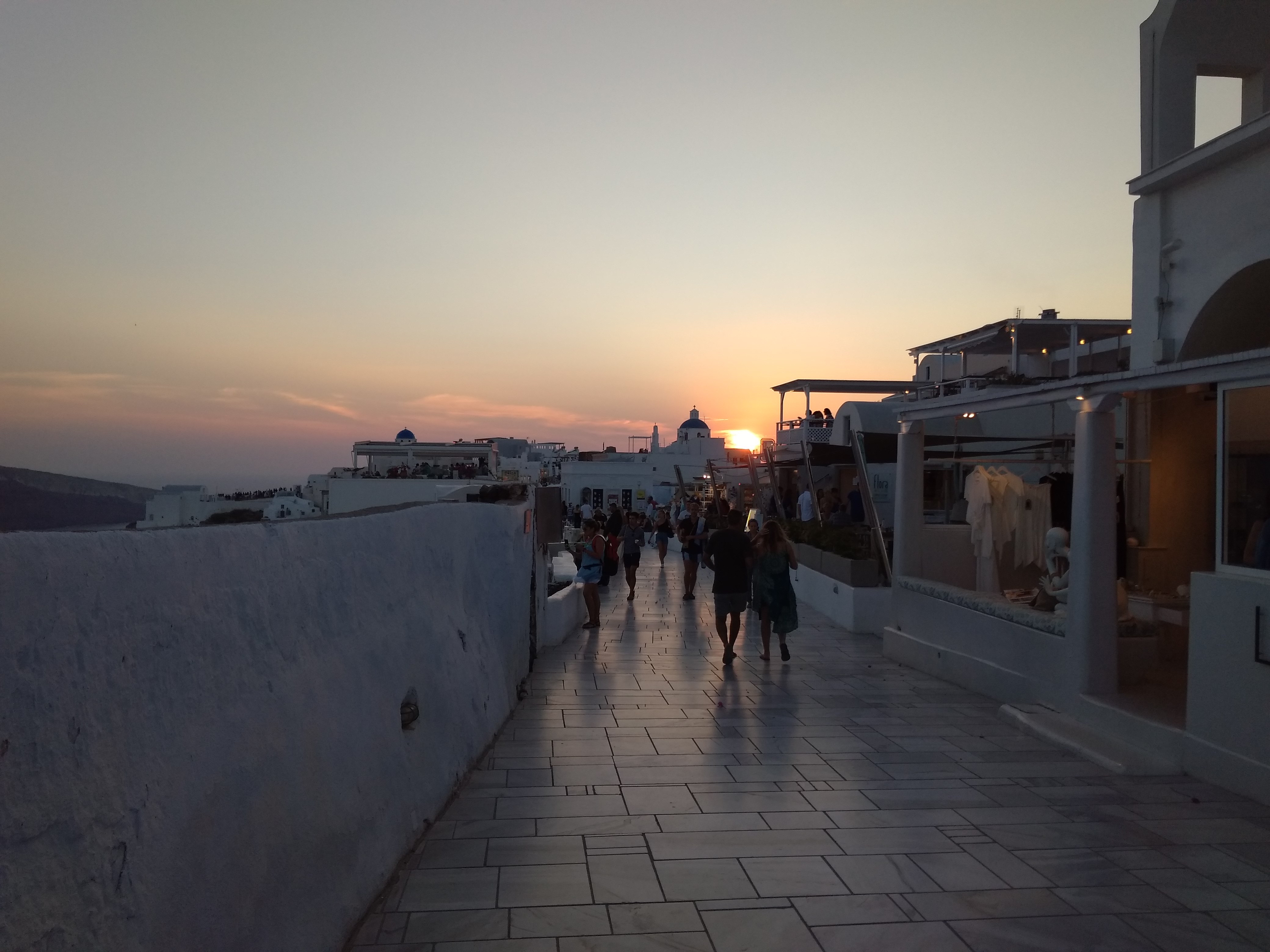 Первый день мы целиком провели на пляже Периссы, а вечером автобусом отправились в Фиру наблюдать нереально красивый закат! На второй день мы взяли авто на прокат, выселились из отеля и уже с сумками целый день путешествовали по острову, так как у нас был поздний вылет в Афины, аж в 23.15. За 2 дня мы успели посмотреть основные пляжи острова и 2 самые популярные деревни — Фиру и Ию. В древний город мы решили не идти из-за жары.
