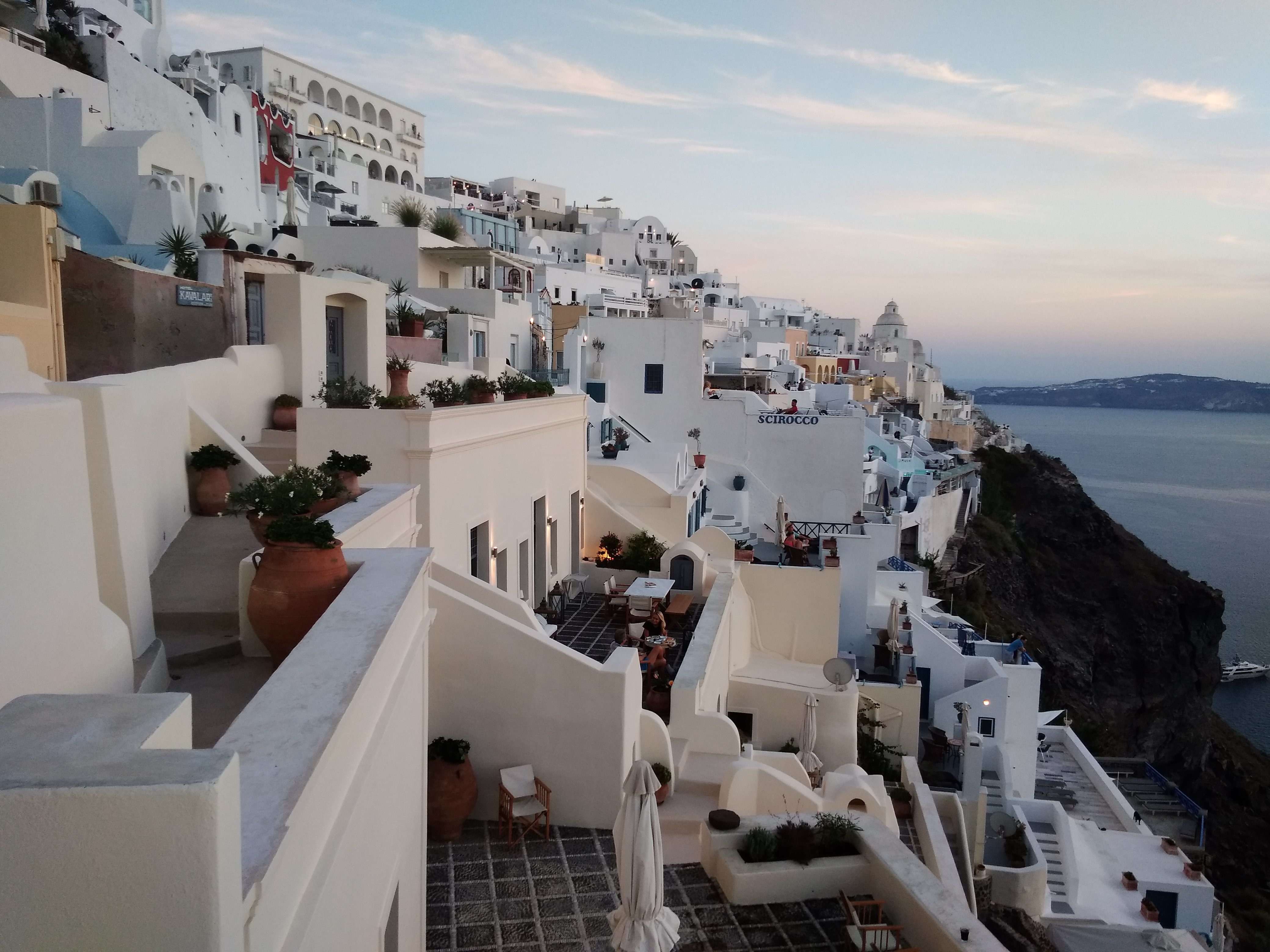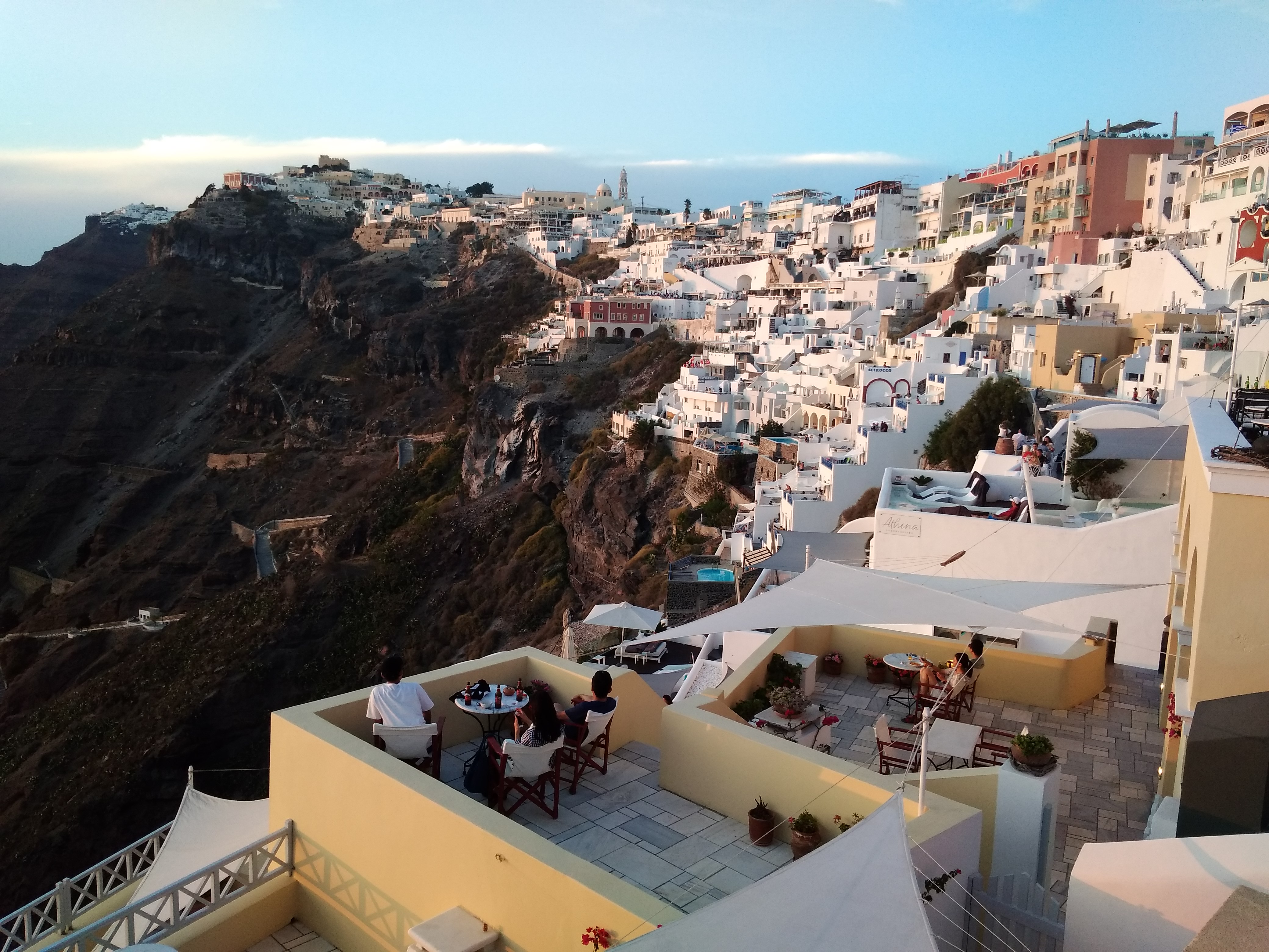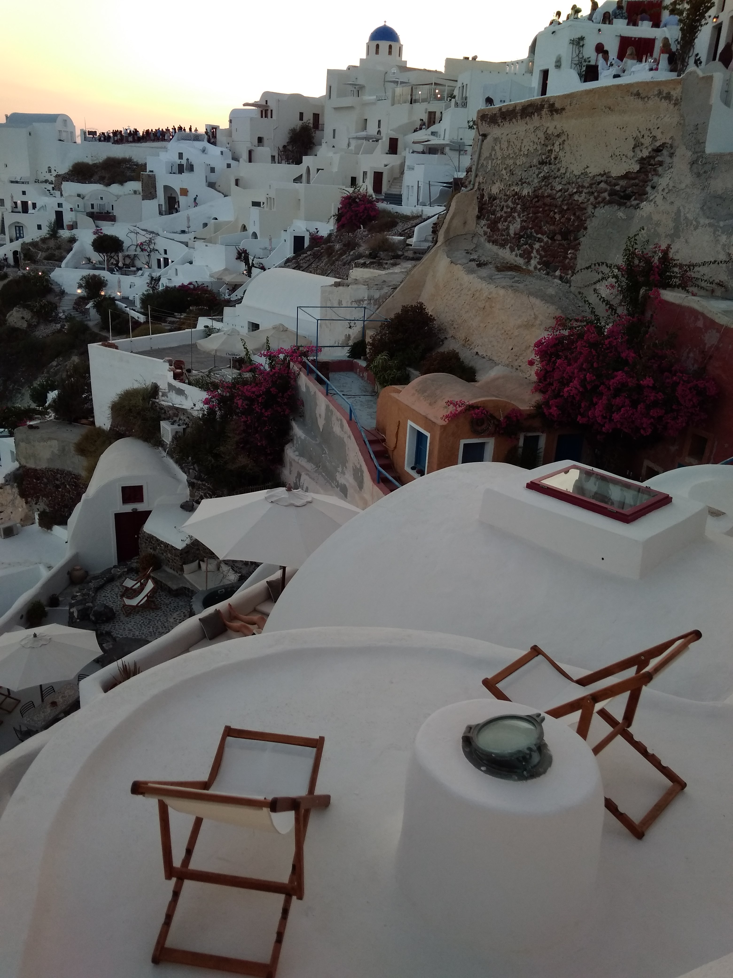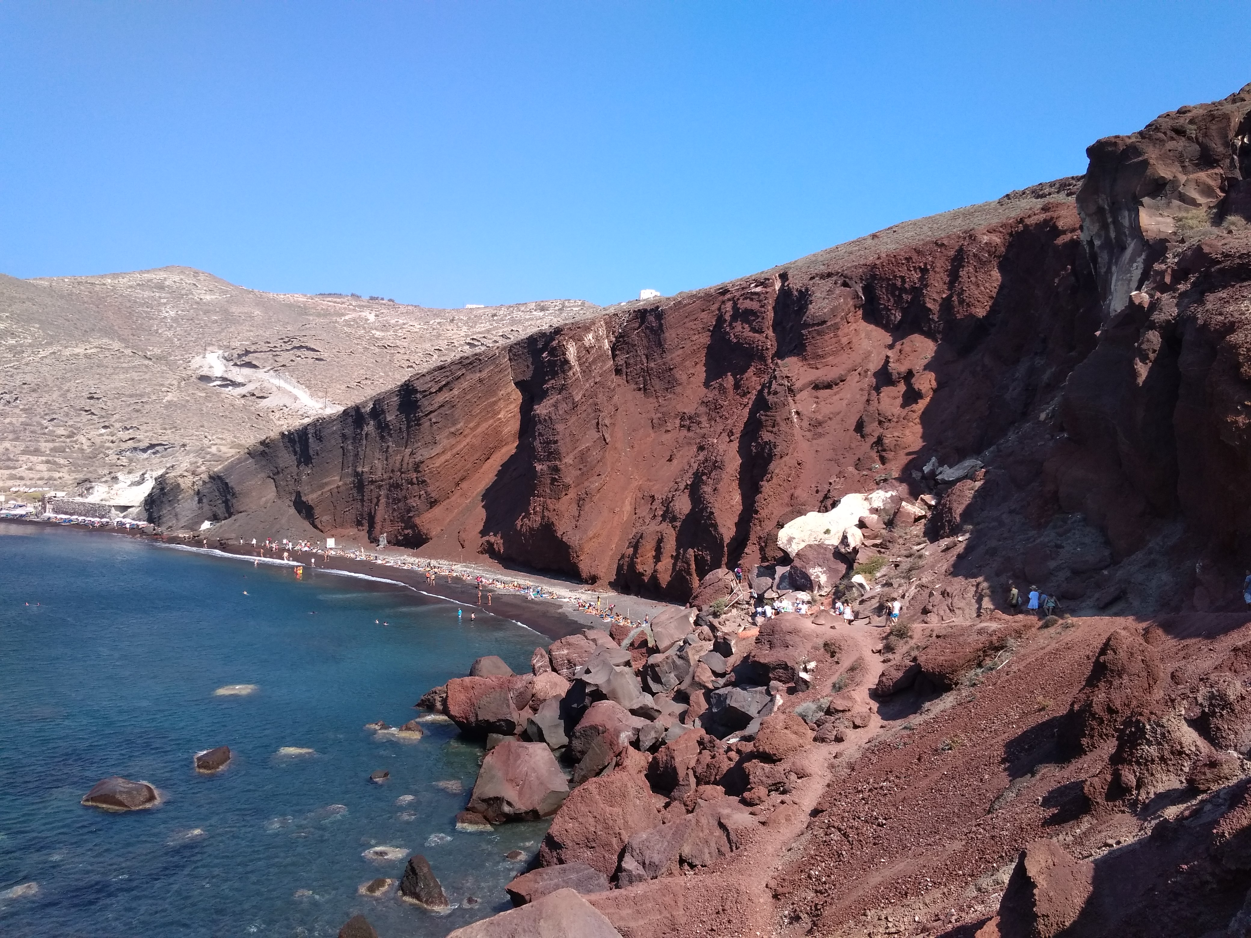Первый день мы целиком провели на пляже Периссы, а вечером автобусом отправились в Фиру наблюдать нереально красивый закат! На второй день мы взяли авто на прокат, выселились из отеля и уже с сумками целый день путешествовали по острову, так как у нас был поздний вылет в Афины, аж в 23.15. За 2 дня мы успели посмотреть основные пляжи острова и 2 самые популярные деревни — Фиру и Ию. В древний город мы решили не идти из-за жары.