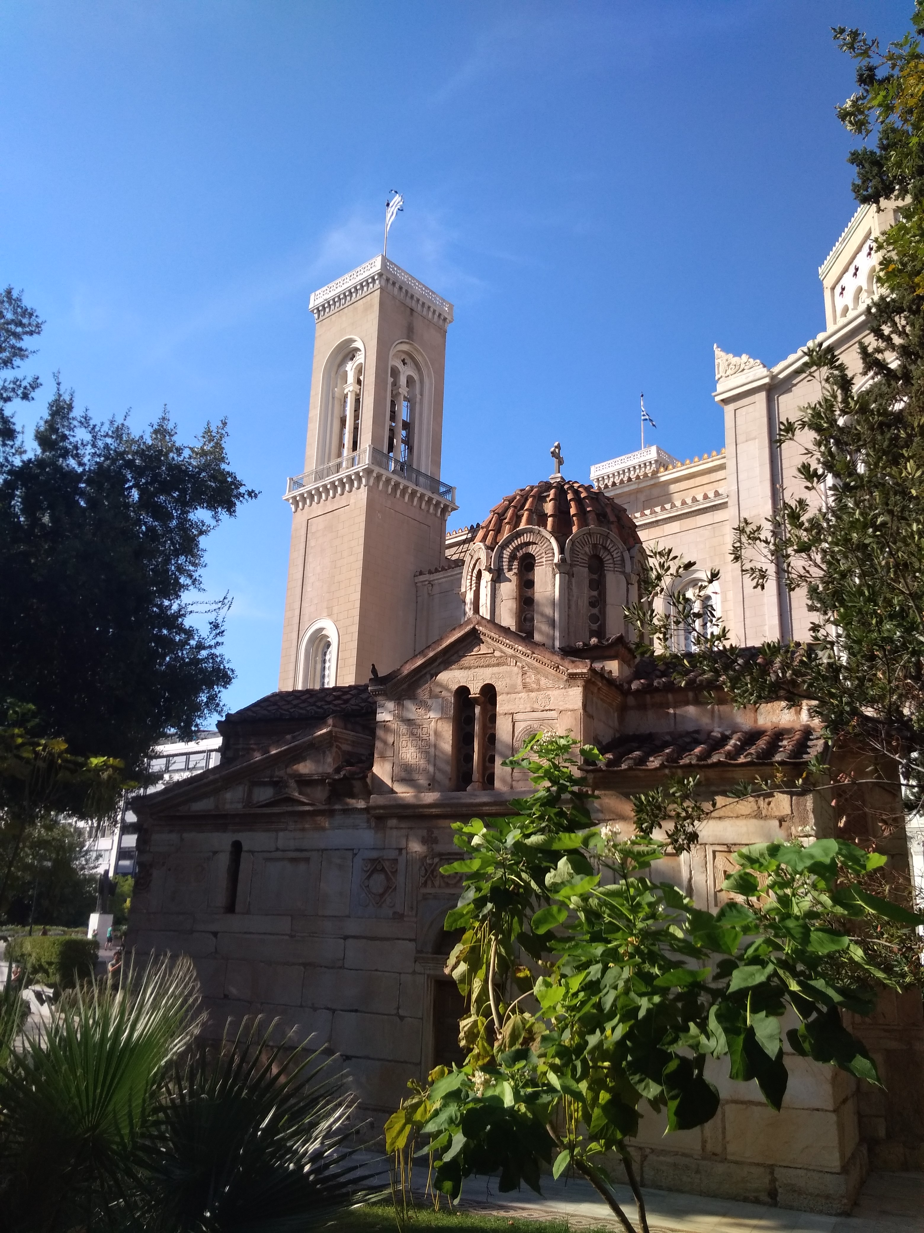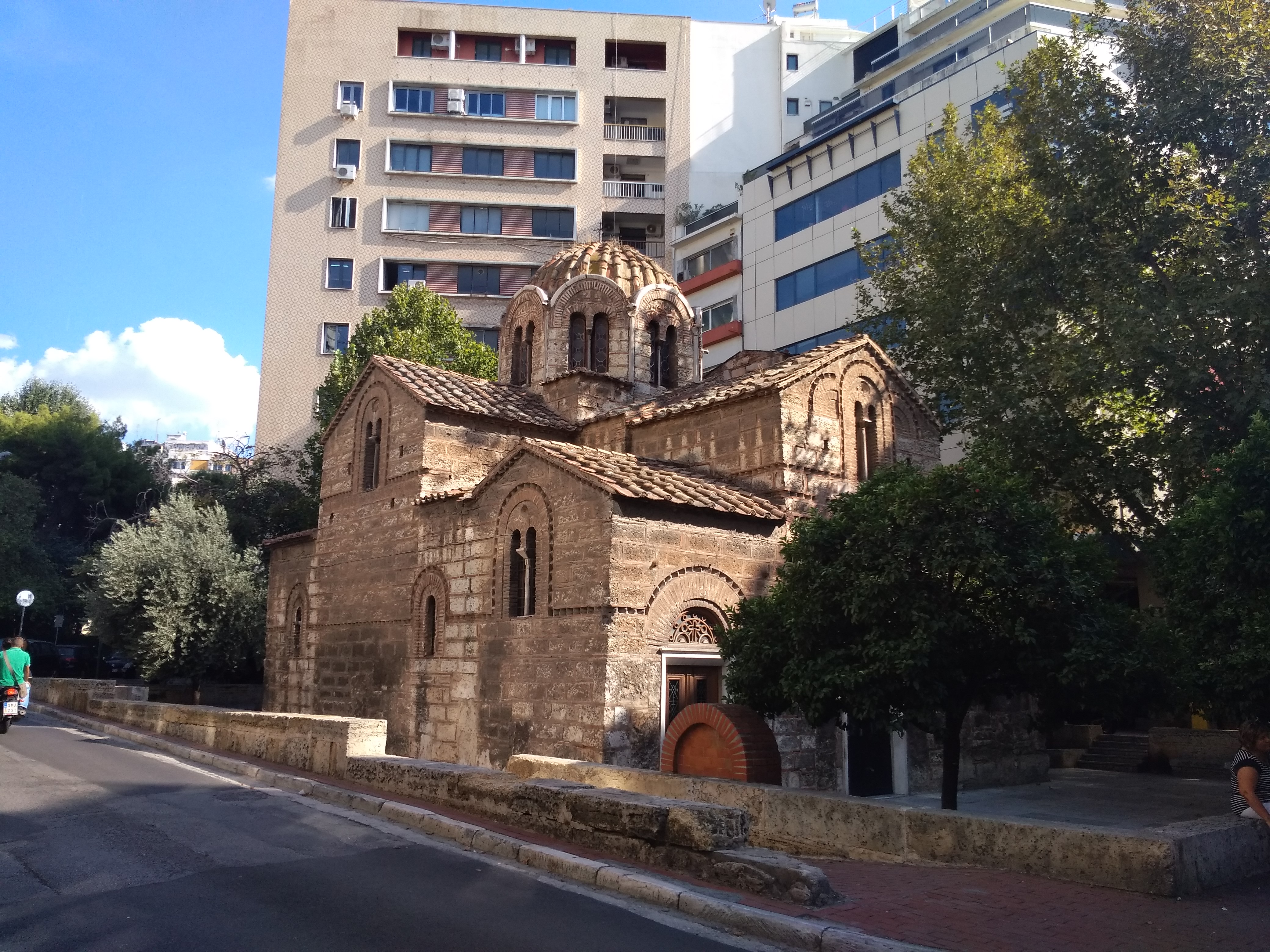 Далее мы пешком отправились в Плаку — район у подножия Акрополя. Сами Афины абсолютно невзрачные и не произвели на нас впечатления, было бы лучше все же подъехать на метро. Но нам было интересно узнать что же из они себя представлют в целом, кроме того пути нам встречались красивые церквушки и даже бизнес-центр построенный прямо над раскопками:
